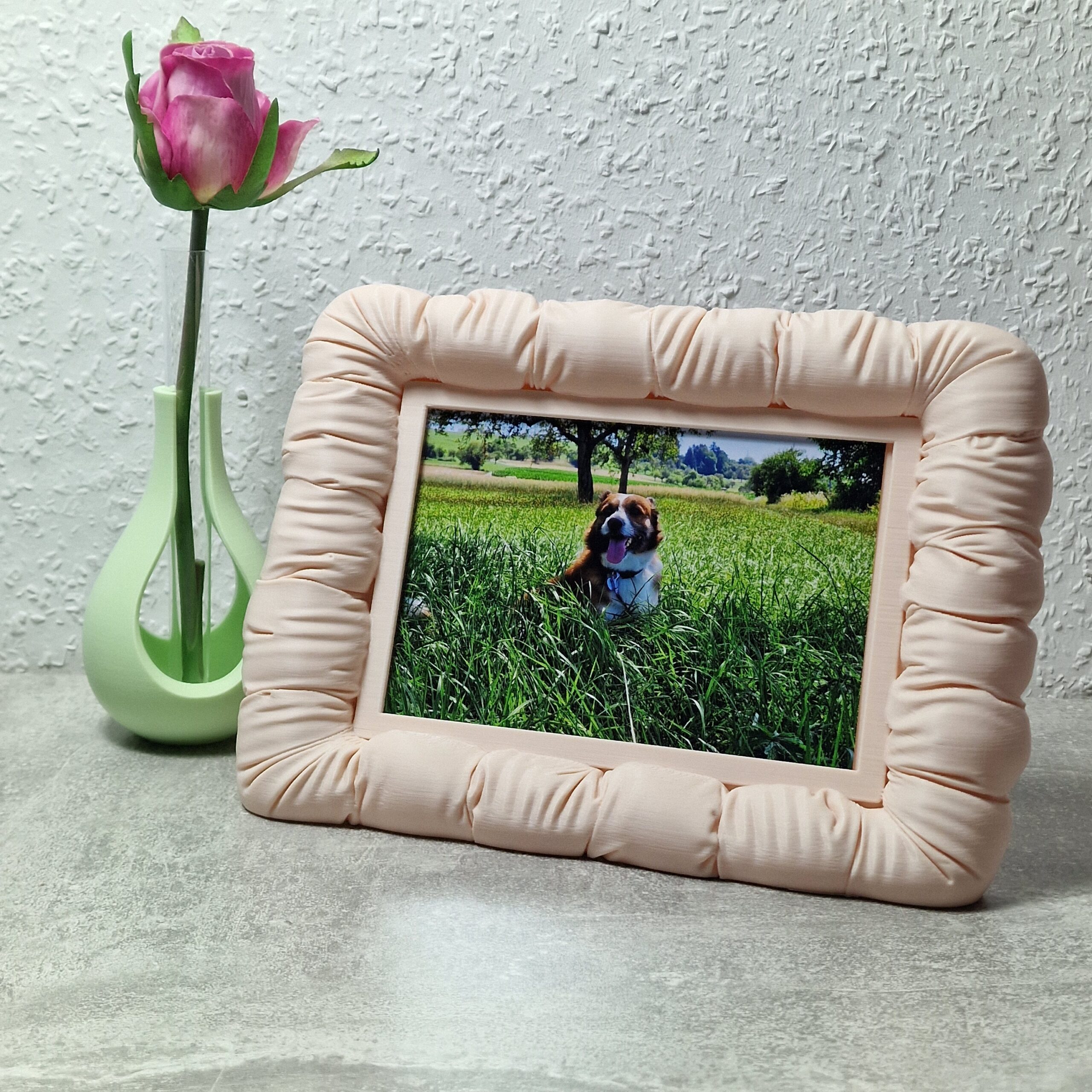 Der Bilderrahmen Velisse vereint modernes Design mit einer weichen, stoffähnlichen Optik. Die sanft geschwungenen Konturen verleihen ihm eine einladende Wärme und machen ihn zu einem besonderen Blickfang in jedem Wohnraum. Erinnerungen werden hier nicht nur präsentiert – sie werden zu taktile Designmomenten, die man förmlich spüren möchte.
