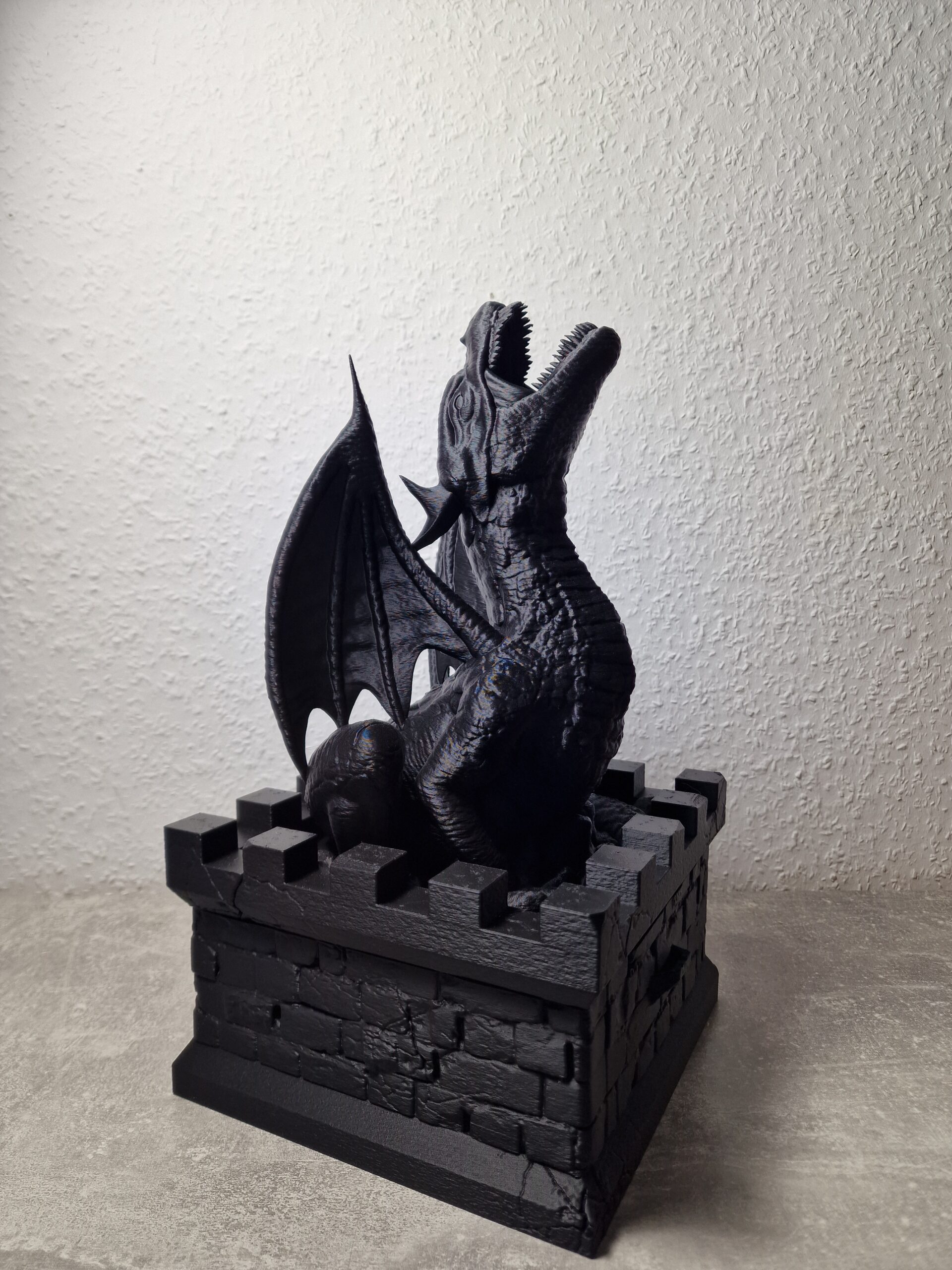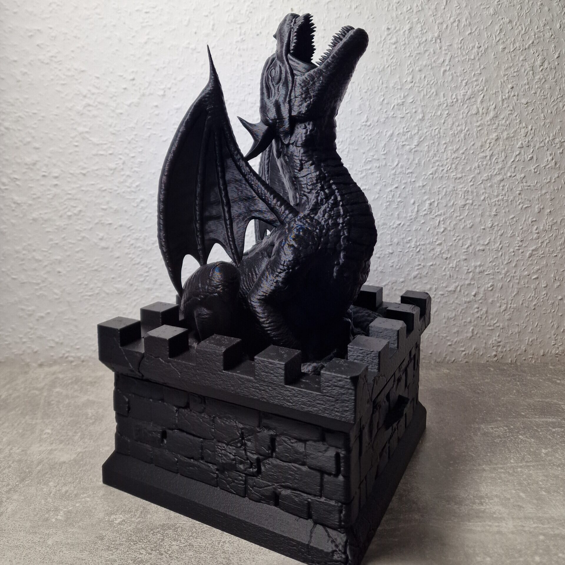 Der Drache eignet sich ideal zum Bemalen. Wenn du möchtest, kannst du ihn mit Acrylfarben oder Modellbaufarben ganz nach deinem Geschmack gestalten und deinem Würfelturm eine persönliche Note verleihen – perfekt für kreative Fantasy-Fans.