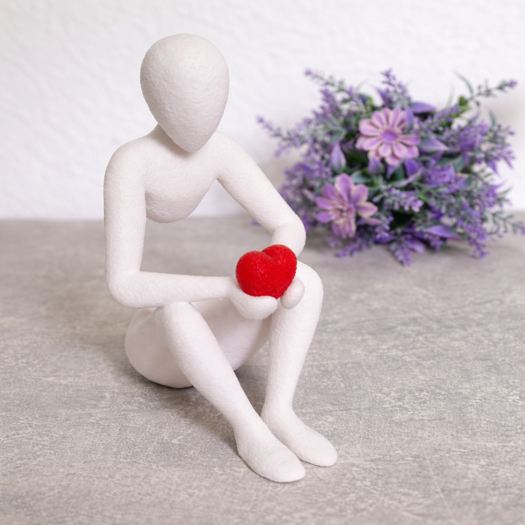 Diese ausdrucksstarke Niemand-Figur „Das Herz“ hält ein kleines Herz in der Hand und steht für Liebe, Verbundenheit und stille Zuwendung.