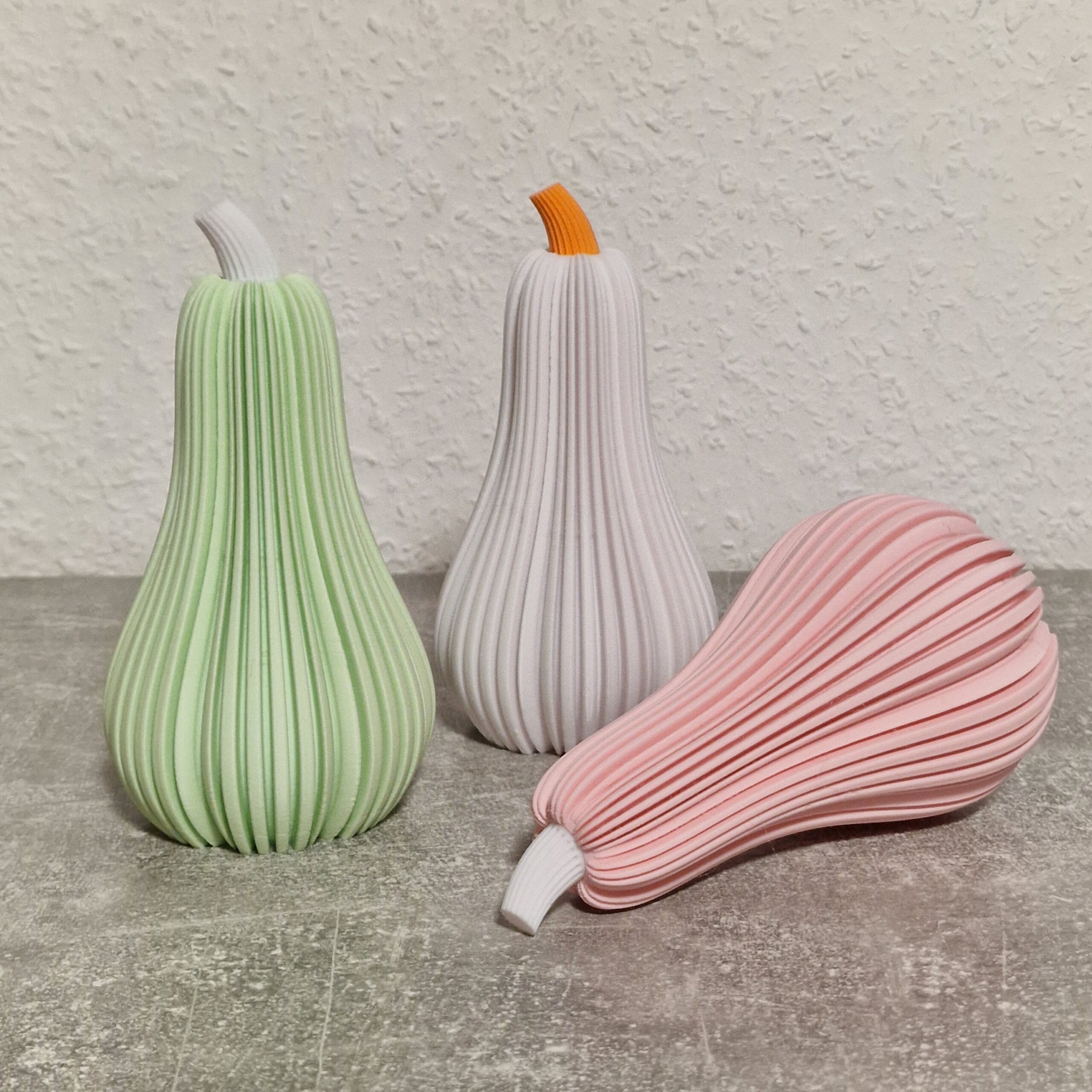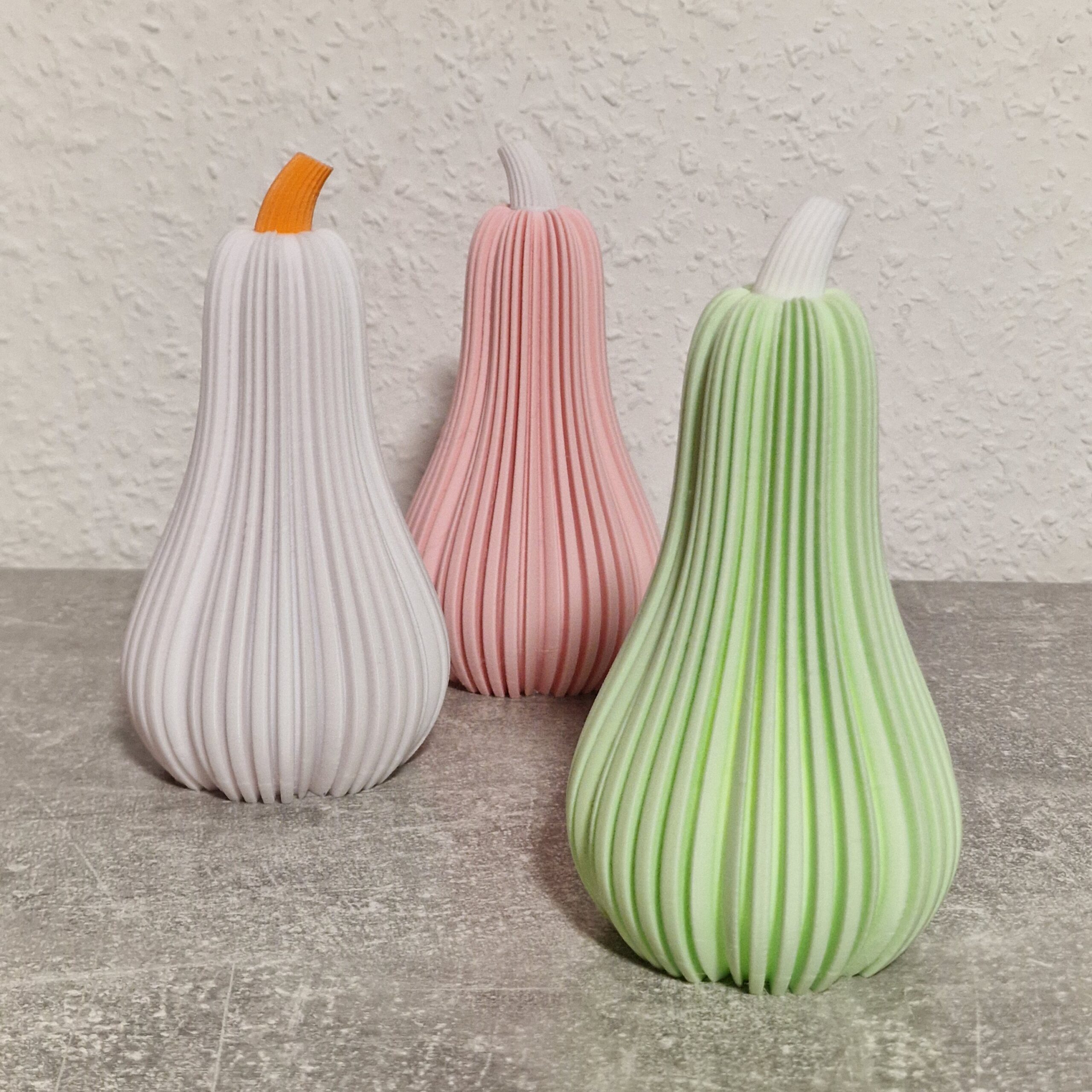 Dieser stilvolle, modern geriffelte Kürbis ist ein echter Hingucker für deine Herbst- und Halloween-Deko! Mit seiner schlanken Form (ca. 16 cm hoch, 8,5 cm breit) fügt er sich perfekt auf Fensterbänke, Sideboards oder als Tischdekoration ein.