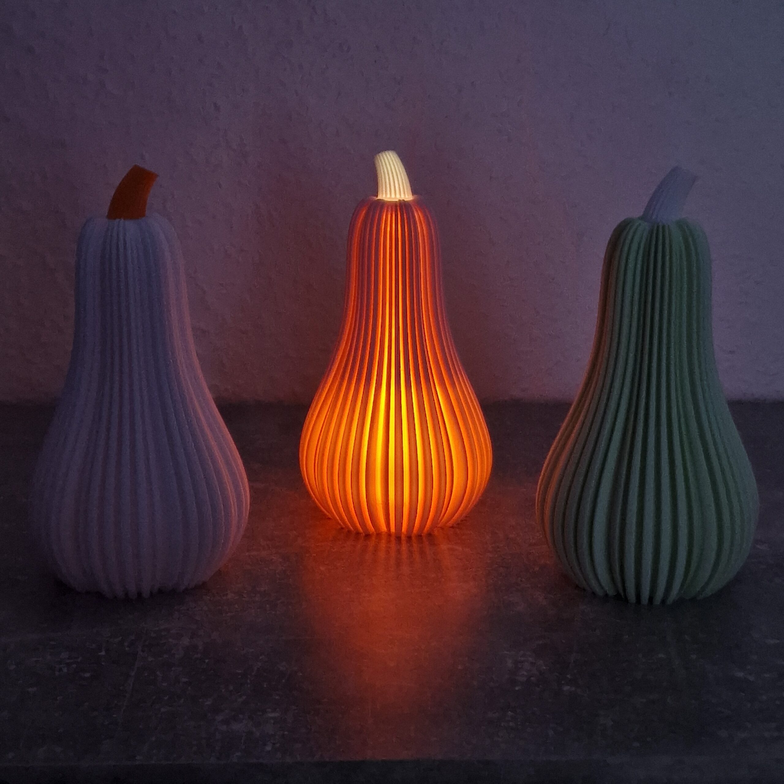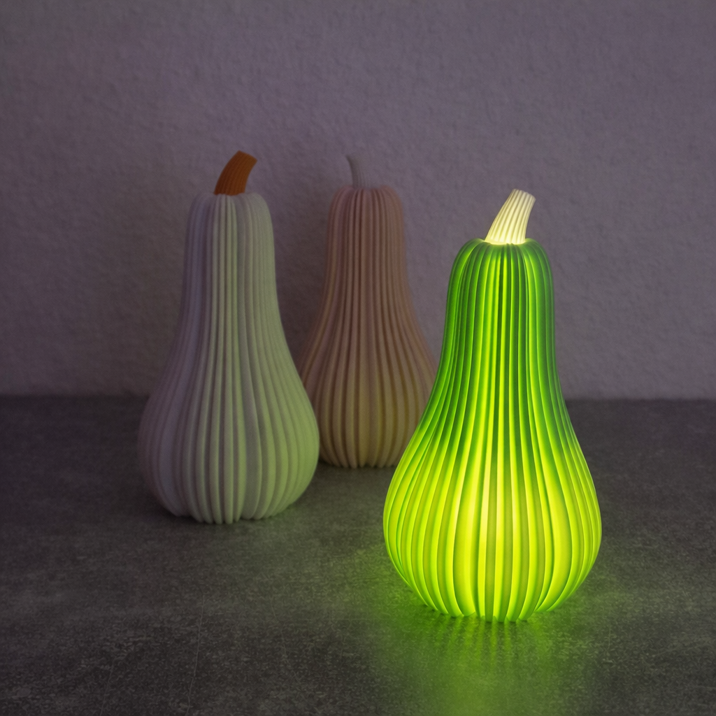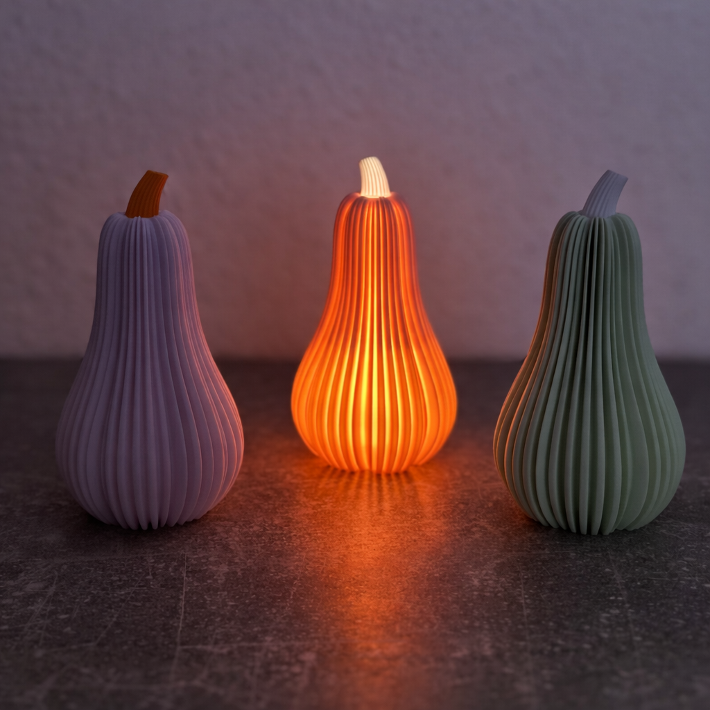 Ein dekorativer Kürbis, der Herbststimmung, modernes Design und stimmungsvolles Licht perfekt vereint.