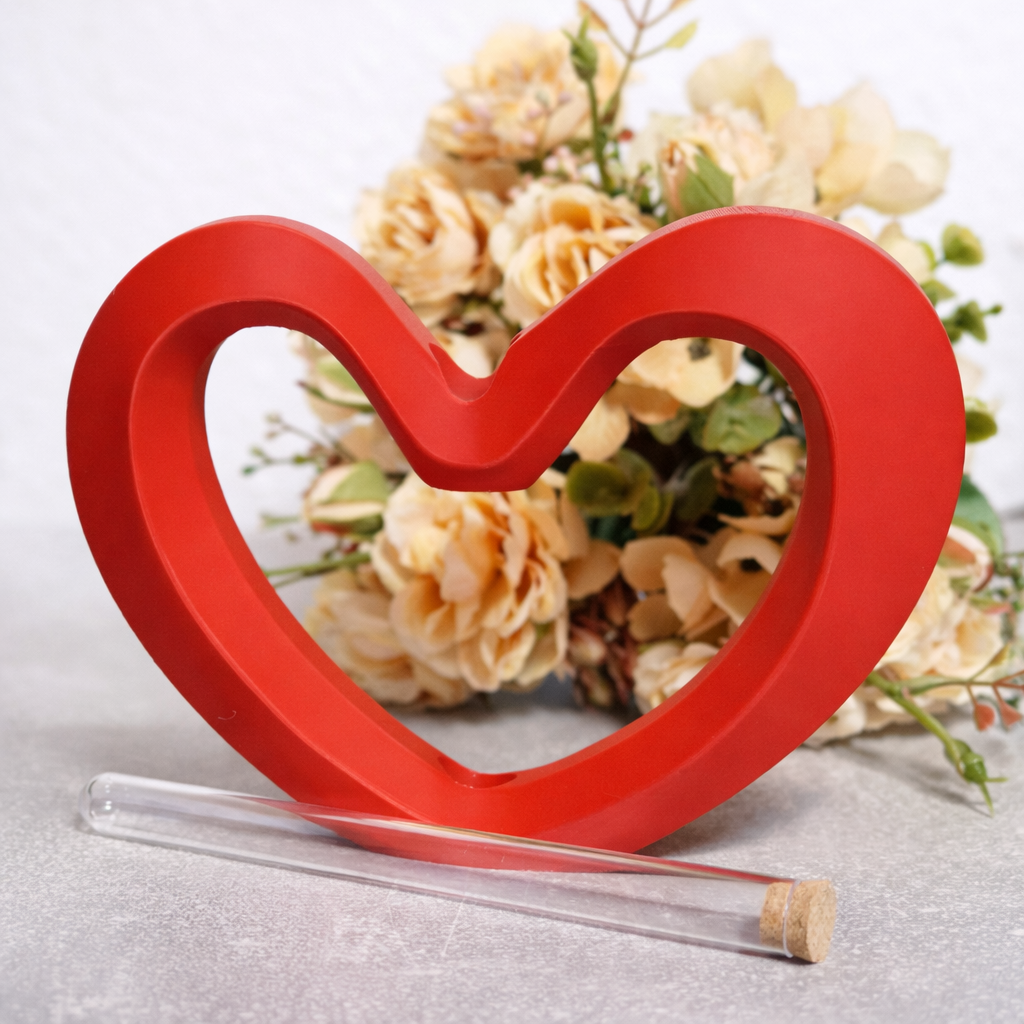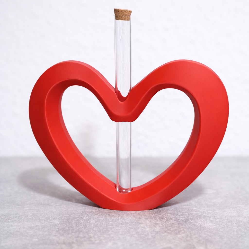 Diese liebevoll gestaltete Herz-Vase „Love“ vereint modernes Design mit emotionaler Tiefe. Als stilvolles Dekoobjekt setzt sie ein klares Zeichen: Liebe – in ihrer schlichtesten und schönsten Form. Mit einem integrierten Reagenzglas eignet sie sich perfekt für einzelne Blüten, Gräser oder zarte Trockenblumen.