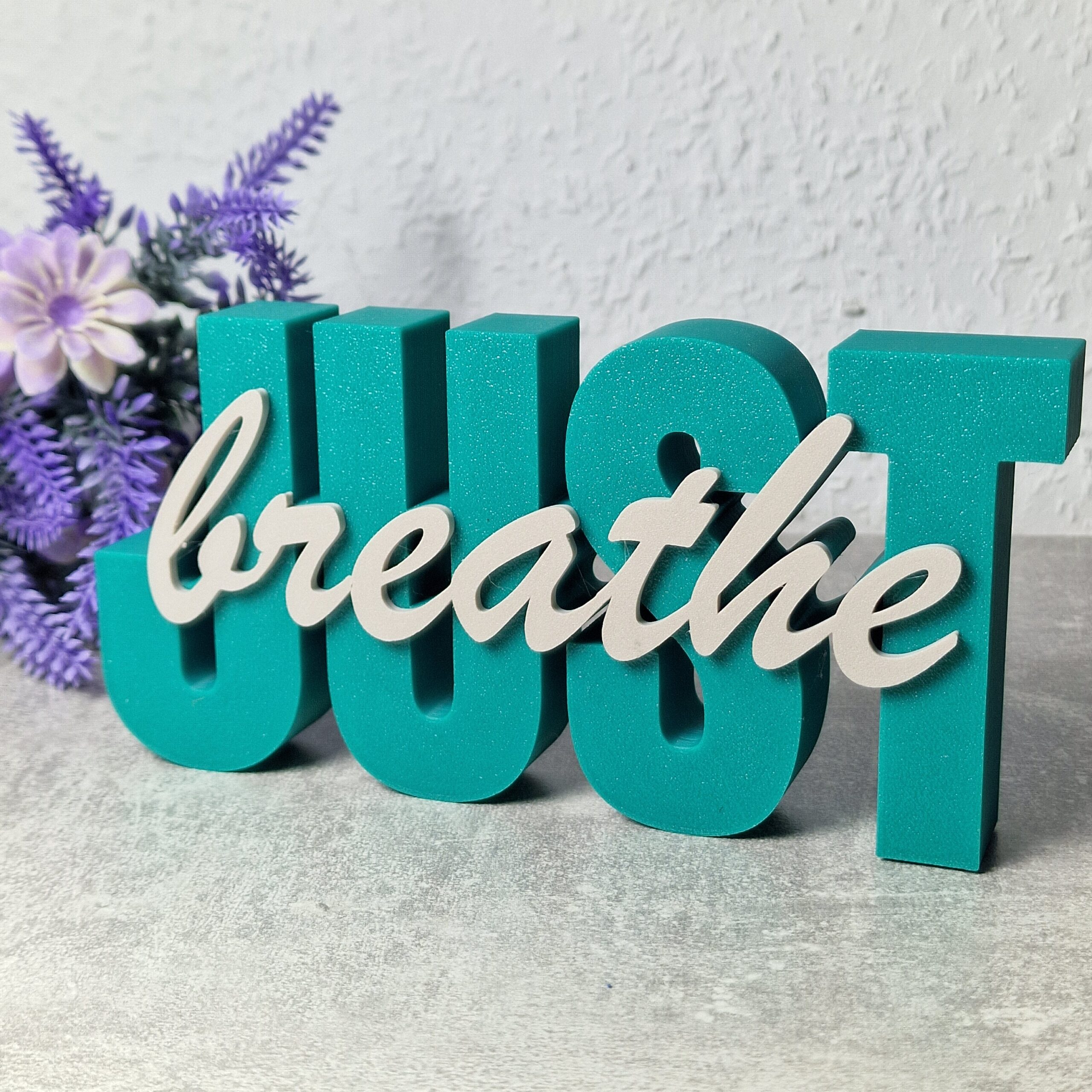 Starke Botschaft: „JUST breathe“ – modern, beruhigend und ausdrucksstark