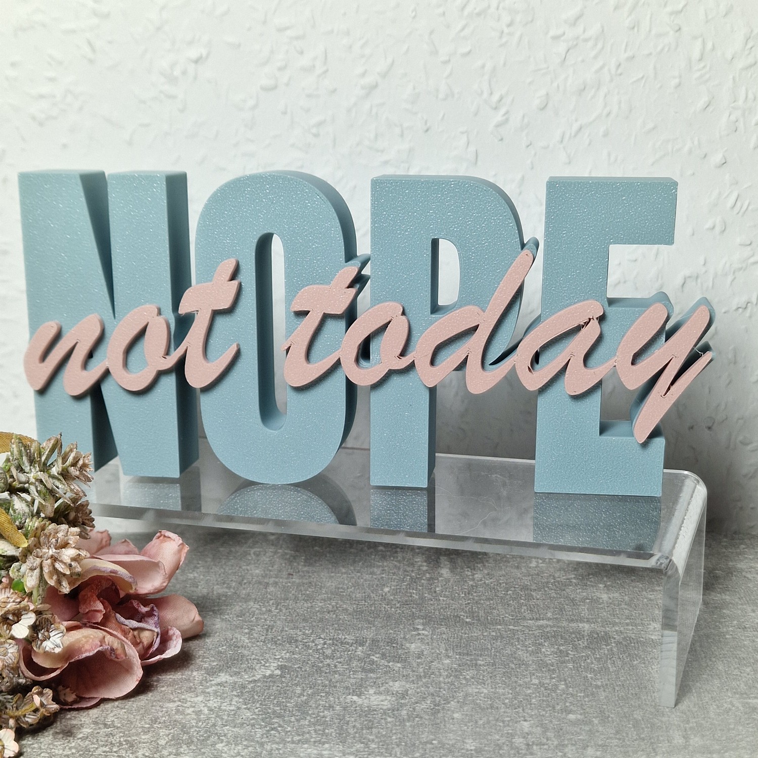 Dieses moderne Statement-Dekoobjekt setzt ein klares Zeichen gegen Stress und Alltagsdrama. „Not Today“ steht für Selbstfürsorge, Gelassenheit und die bewusste Entscheidung, sich heute nicht aus der Ruhe bringen zu lassen – perfekt für Zuhause, Büro oder als kleines Geschenk mit Aussage.