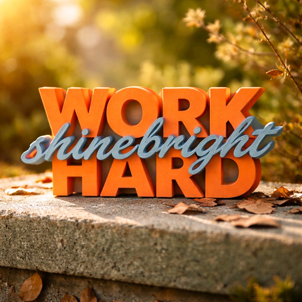 Starke Botschaft: „Work Hard – Shine Bright“ – modern, motivierend und ausdrucksstark